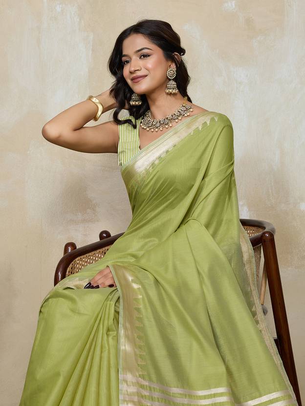 Pastel Green Linen Saree In Solid Color Soft And Elegant