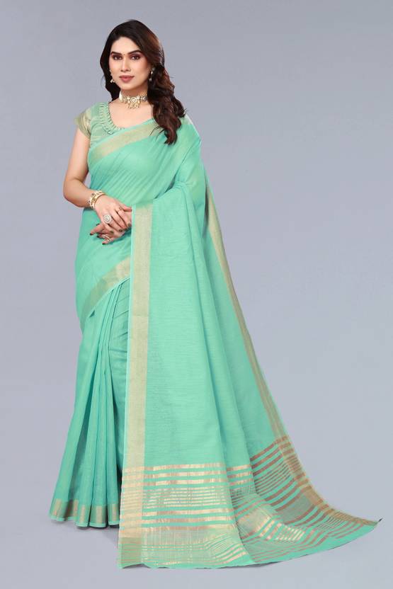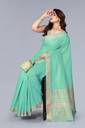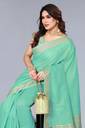 BFM Solid/Plain, Woven, Self Design Saree with Attached Blouse Linen Saree (Green)