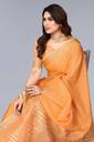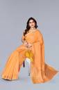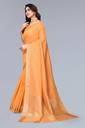 BFM Solid/Plain, Woven, Self Design Saree with Attached Blouse Linen Saree (Orange)