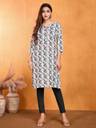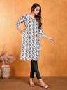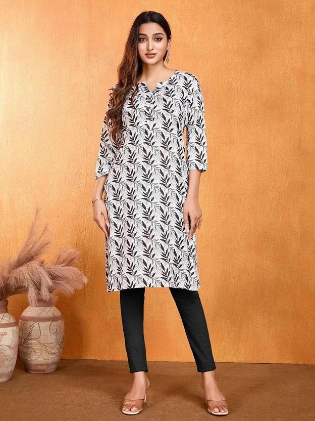 Women's Rayon Printed Straight Kurta | 3/4 Sleeves | Notch Neck