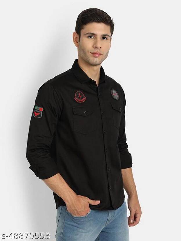 BG TEX Men Solid Casual Black Shirt