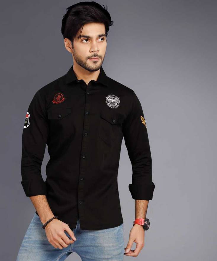 For a Modern rugged look pair this shirt with light wash jeans and sneakers. This shirt from Bespoqe features double flap pockets and it is complimented with Embroidered Applique on the sleeve