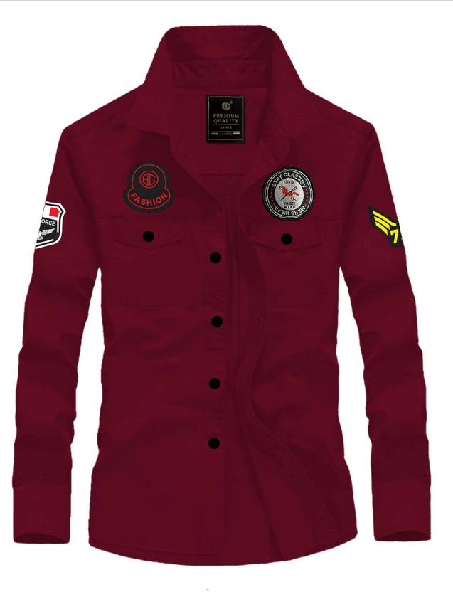 BG TEX Men Solid Casual Maroon Shirt