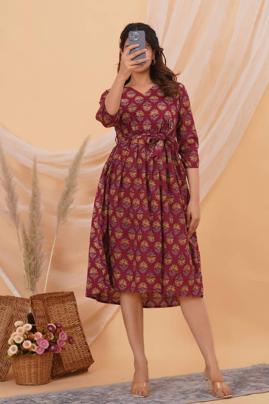 BHAAVYA TEXTILES Women Floral Print Gown Kurta (Maroon)