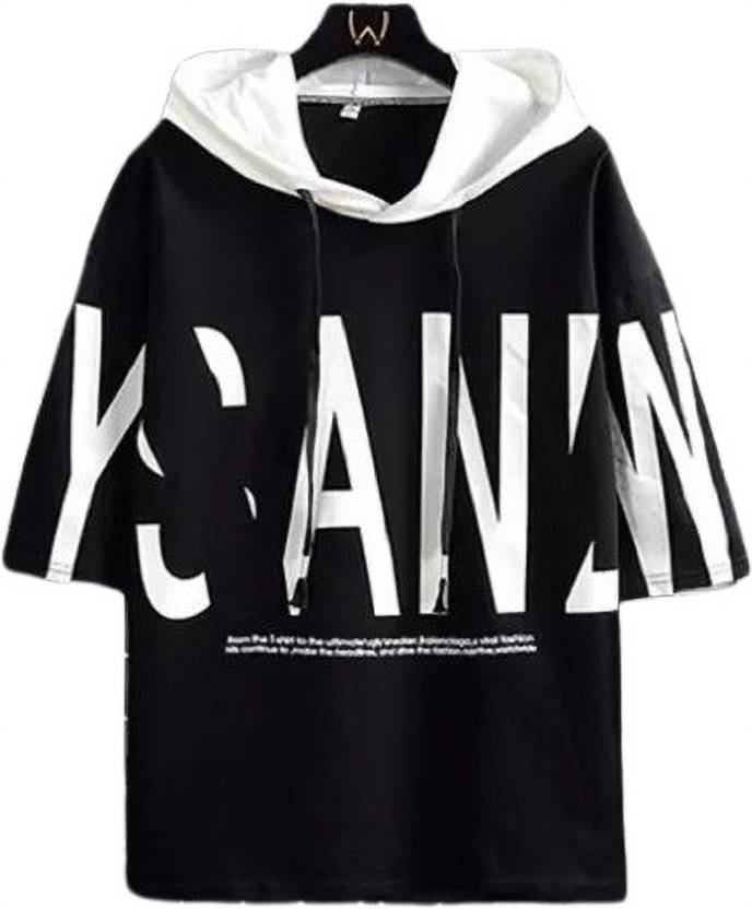 Bhadawar creations Printed Men Hooded Neck Black T-Shirt