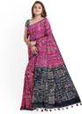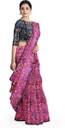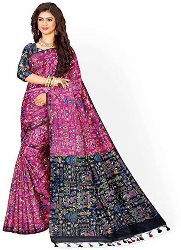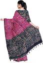 Printed Madhubani Cotton Silk Saree (Pink, Black)