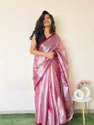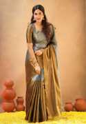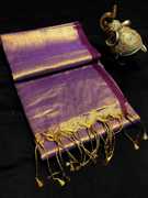 Bhadra Shopping Store Solid/Plain Handloom Handloom Tissue Saree (Multicolor)