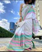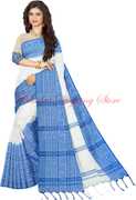Bhadra Shopping Store Woven Bhagalpuri Handloom Cotton Blend Saree (Blue)