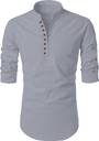 Mandarin Collar, Button Placket, Curved Hem, Straight