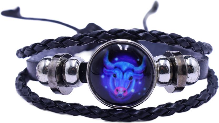 Zodiac Constellation Bracelet | Zodiac Signs Guardian Fluorescent Woven Black Leather Bracelet for Women and Men | (Zodiac) Zodiac Bracelets