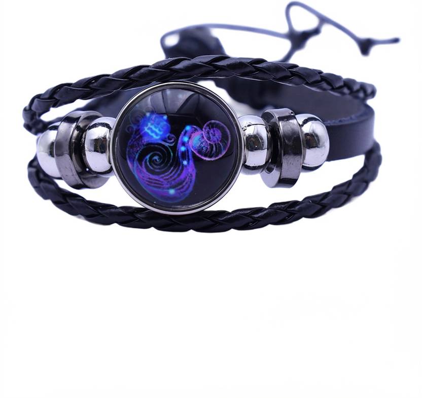 Zodiac Constellation Bracelet | Zodiac Signs Guardian Fluorescent Woven Black Leather Bracelet for Women and Men | (Aquarius) Zodiac Bracelets
