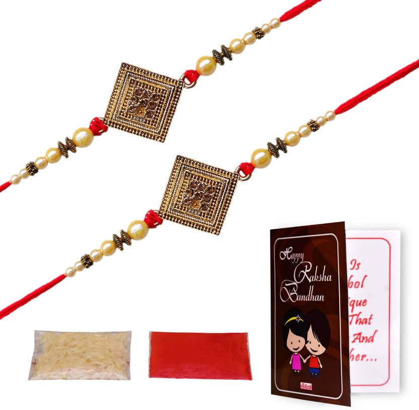 2 pcs Pandle Rakhi, Small Greeting Card, Roli, Chawal