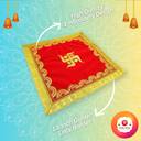 Bhakti Lehar ( Size: 17 x 17 Inches ) Fancy Swastik Design Red Velvet Pooja Aasan Cloth for God Mandir / Choki Aasan Kapda Mat for God Idols Sitting, Home Mandir, Temple and Pooja Ghar Aasan Altar Cloth (Pack of 2)
