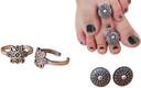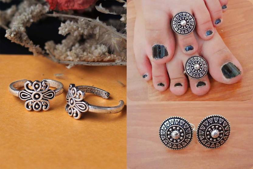 A ring is a small circular band typically worn on a finger, often as a piece of jewelry. It can be made of various materials, such as precious metals like gold, silver, or platinum, as well as gemstones like diamonds, rubies, sapphires, or other decorative elements. Rings can serve various purposes, from symbolizing commitment in weddings or engagements to being worn as fashion accessories or status symbols. They come in different styles and designs, ranging from simple and understated to elaborate and ornate. Bhakti brings you amazing collections of Silver and brass plated Toe Rings with the best quality and durability which gives you stunning and decent look on all outfit. Plus, they only weigh 10 grams! Check them out and thank us later ??