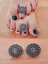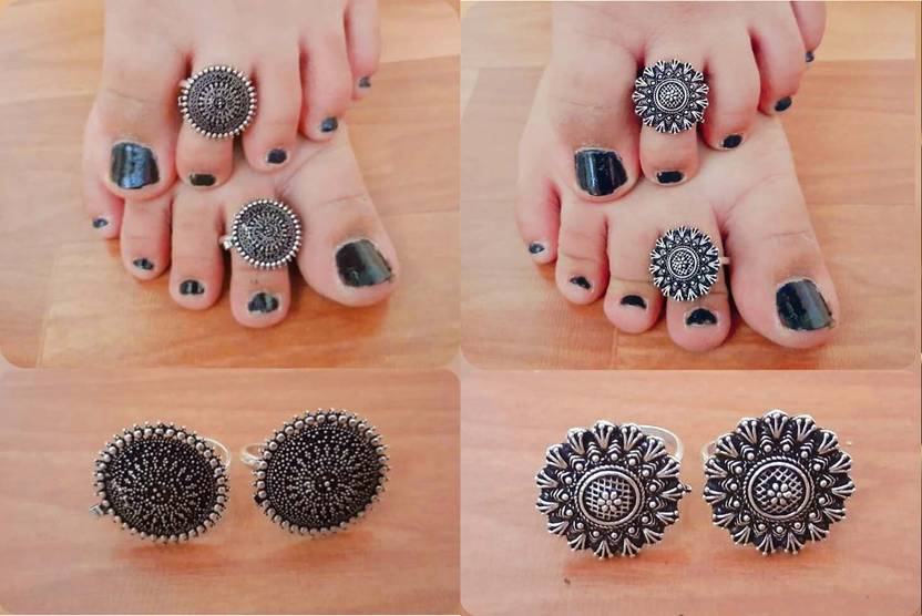 A ring is a small circular band typically worn on a finger, often as a piece of jewelry. It can be made of various materials, such as precious metals like gold, silver, or platinum, as well as gemstones like diamonds, rubies, sapphires, or other decorative elements. Rings can serve various purposes, from symbolizing commitment in weddings or engagements to being worn as fashion accessories or status symbols. They come in different styles and designs, ranging from simple and understated to elaborate and ornate. Bhakti brings you amazing collections of Silver and brass plated Toe Rings with the best quality and durability which gives you stunning and decent look on all outfit. Plus, they only weigh 10 grams! Check them out and thank us later ??