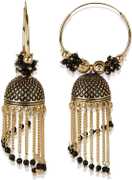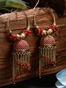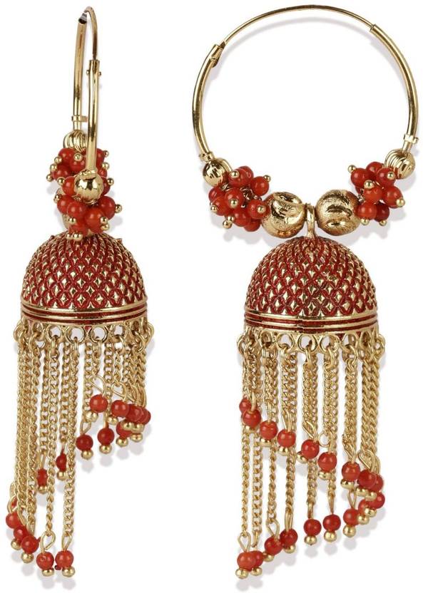 BHANA FASHION Red & Gold-Plated Enamelled Dome Shaped Jhumkas_B Pearl Brass Jhumki Earring