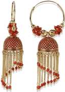 Red & Gold-Plated Enamelled Dome Shaped Jhumkas Secured with Lever Back Closure, Details :Enamelled