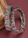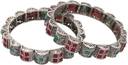 Set of 2 Silver Oxidised Red and Green Stone Studded Bangles_SF