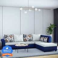 Bharat Lifestyle L shape Fabric 6 Seater Sofa (Finish Color - Grey Blue, DIY(Do-It-Yourself))