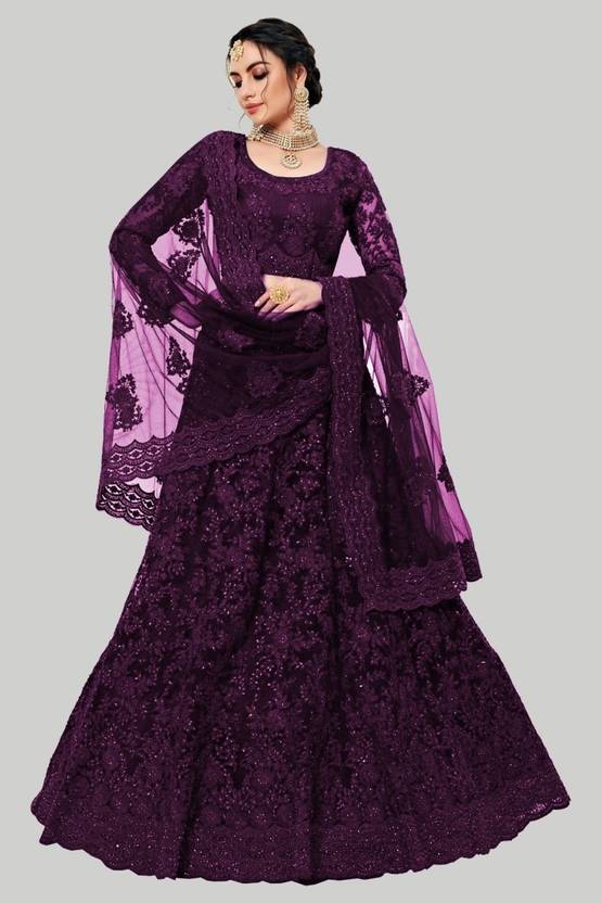 Embroidered Semi Stitched Lehenga Choli (Purple)
