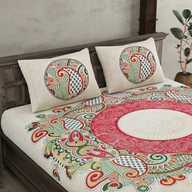 BharatLinen Cotton King Flat 260 TC Jaipuri Prints Bedsheet (Pack of 1, Blue)