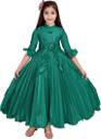 Girls Maxi/Full Length Party Dress (Green, 3/4 Sleeve)
