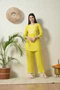This vibrant co-ord set is just what you need for the all season. Cute and stylish, this set can be teamed with a pair of smart co-ord set to complete the ensemble. A very beautifully crafted 2pcs set for women. It include 1 top and 1 bottom with it. Regular top with Pant-plazzo Bottom for Women.