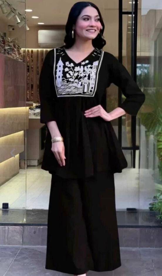 This vibrant co-ord set is just what you need for the all season. Cute and stylish, this set can be teamed with a pair of smart co-ord set to complete the ensemble. A very beautifully crafted 2pcs set for women. It include 1 top and 1 bottom with it. Regular top with Pant-plazzo Bottom for Women.