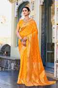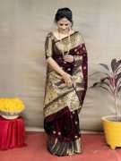 FAB WOVEN Printed Banarasi Silk Blend Saree (Maroon)