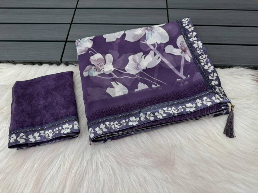 Digital Print saree, Floral prints, Tassels, Fancy Border, Contemporary