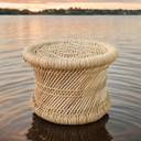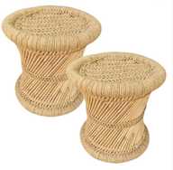 Bhavishya Bamboo Mudda Stool, Chair For Living Room Round Shape Wooden Stool For Garden Outdoor & Cafeteria Stool (Beige, White, Pre-assembled)