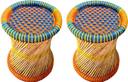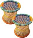 Bhavishya Handmade Bamboo Stool for Home,Office & Livingroom Living & Bedroom Stool (Orange, Blue, Pre-assembled)