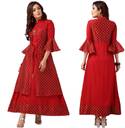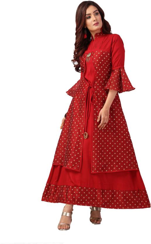 Bhavna Textiles Women Printed Cotton Rayon Anarkali Kurta (Maroon)