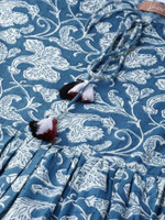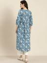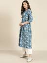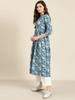 Sporting an attractive style, the round neckline with tie-up detailing of the kurta enhances its visual appeal, while the three-quarter sleeves strike an ideal balance between modernity and tradition. Besides, the flared silhouette of the kurta adds a touch of grace, ensuring you make a statement wherever you go. Moreover, paired with palazzos, this ensemble exudes a sense of sophistication, making it a versatile choice for various events.