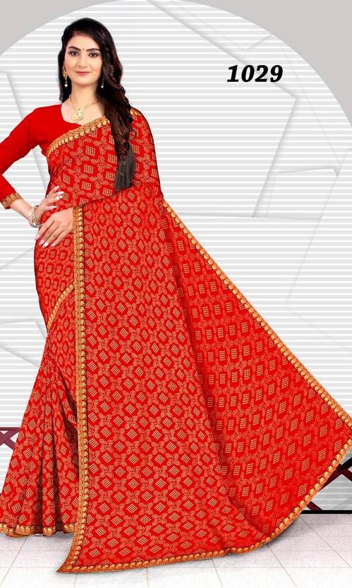 Printed Bandhani Art Silk Saree (Red)