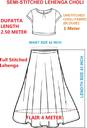 * Material Lehenga :- georgette, *Lehenga Length: 42", Waist :- Adjustable upto 44" , Lehenga Flair :- 4 Meter., Choli :- Unstitched(Adjustable up to 42"), Dupatta :- 2.50 Meter, Work: Glitter Coding work for stylish look. *Package Contains: 1 Semi-Stitched Lehenga with 1 Dupatta and 1 unstitched Blouse. Saree has rich embroidered party wear look. It gives designer rich look to your personality. Can be wear in every occasion like wedding, party wear, ceremony, evening, reception, haldi ceremony. Best gift for your loved ones.