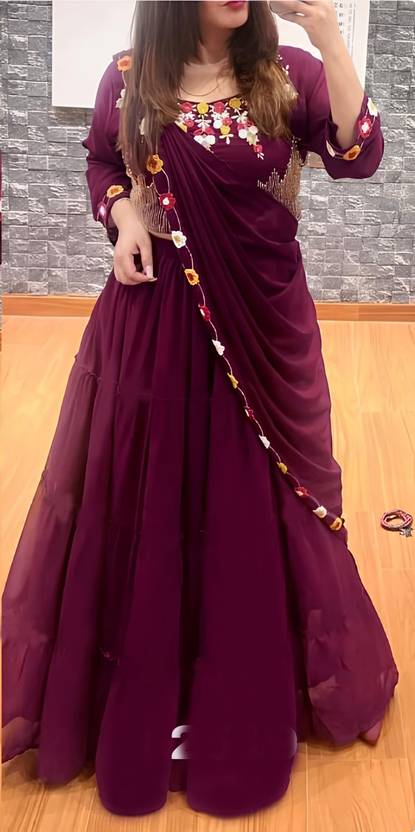 * Material Lehenga :- georgette, *Lehenga Length: 42", Waist :- Adjustable upto 44" , Lehenga Flair :- 4 Meter. || Choli :- Unstitched(Adjustable up to 42") || Dupatta :- 2.50 Meter || Work: Glitter Coding work for stylish look. *Package Contains: 1 Semi-Stitched Lehenga with 1 Dupatta and 1 unstitched Blouse. Saree has rich embroidered party wear look. It gives designer rich look to your personality. Can be wear in every occasion like wedding, party wear, ceremony, evening, reception, haldi ceremony. Best gift for your loved ones. Explore the Collection Of Beautifully Designed Lehenga Choli From Iconic enterprises on Flipkart Each Piece Is Elegantly Crafted And Will Surely Add To Your Wardrobe. Pair This Piece With Heels Or Flats For A Graceful Look. Our Product Motive to make one more step with today. The lehenga is equally traditional, stylish, and versatile. A smart cut on a lehenga can elevate your style and balance your look. The right garment if you want to go traditional or experiment with a new look. The intricate stitching of this lehenga choli along with the fabric and embellishments makes for a versatile look that you can recycle at weddings, parties and festivals. The Seven Colored Partywear Designer Embroidered Georgette Lehenga Choli has a Regular-fit and is Made From High Grade Fabrics And Yarn, Top.