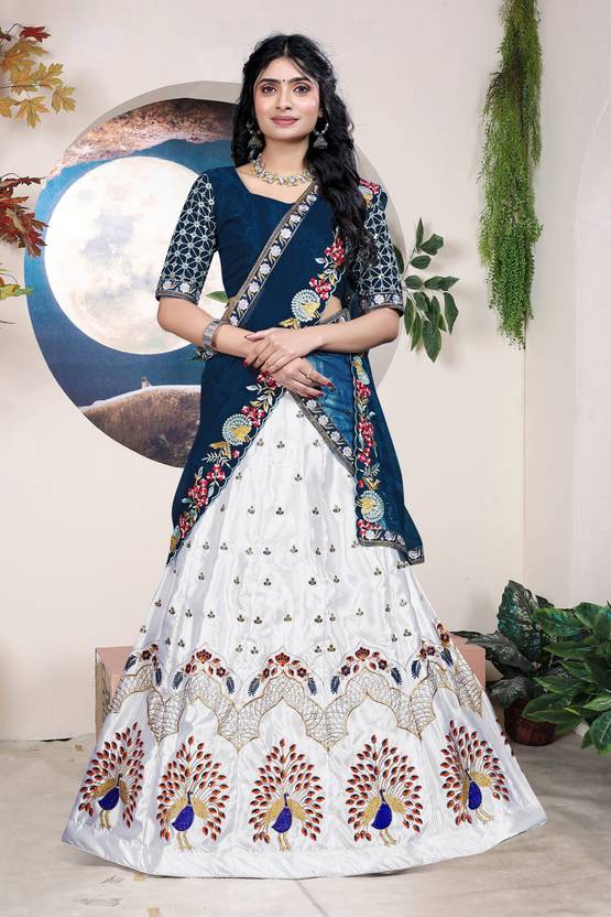 BHOJALCREATION Embroidered Semi Stitched Lehenga Choli  (White)