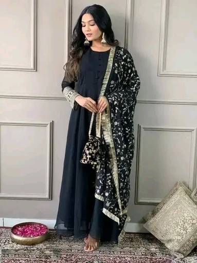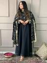 BHOOLKU Embroidered Georgette Stitched Anarkali Gown (Black)