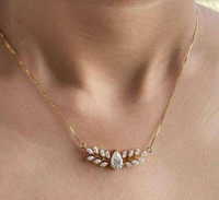Featuring an elegant, leaf-inspired pendant, this women’s necklace brings a graceful theme to the forefront. The pendant is delicately embellished and shaped to exude a classy form, lending this accessory an organic charm that blends with both soft and elaborate aesthetics.