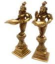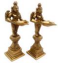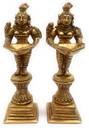 Bhunes Brass Deepam, Deep Lakshmi, Laxmi, Diya Lady Idol Set Of 2 Decorative Showpiece - 17 cm (Brass, Gold)