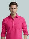 Univibe Men Solid Cotton Blend A-line Kurta (Pink)
