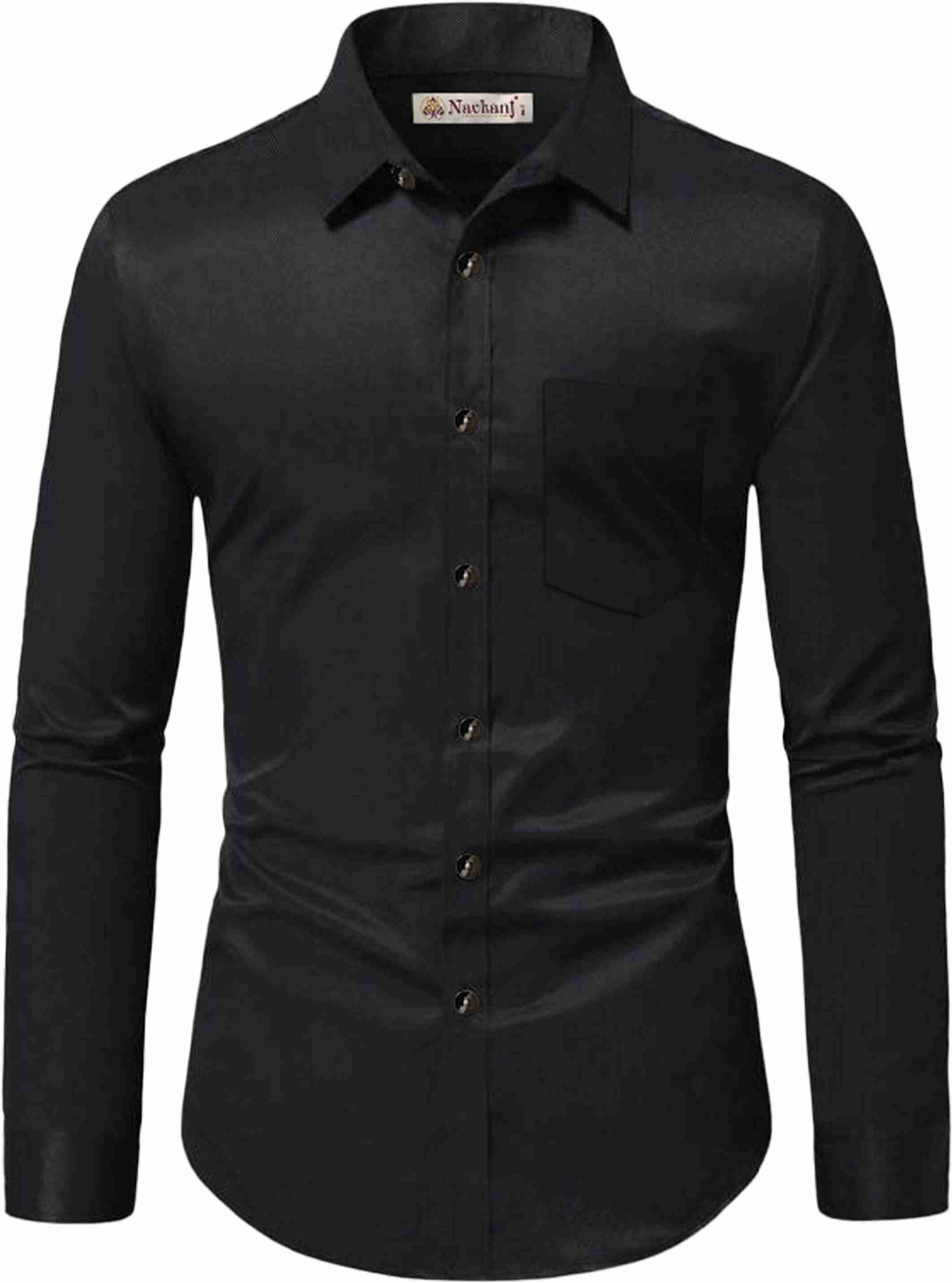 Men Slim Fit Solid Spread Collar Casual Shirt