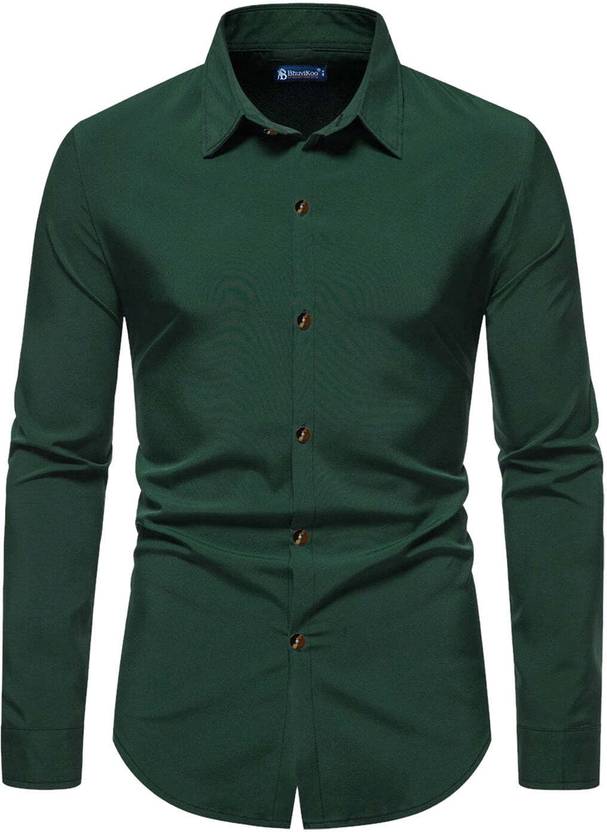 Men Slim Fit Solid Spread Collar Casual Shirt