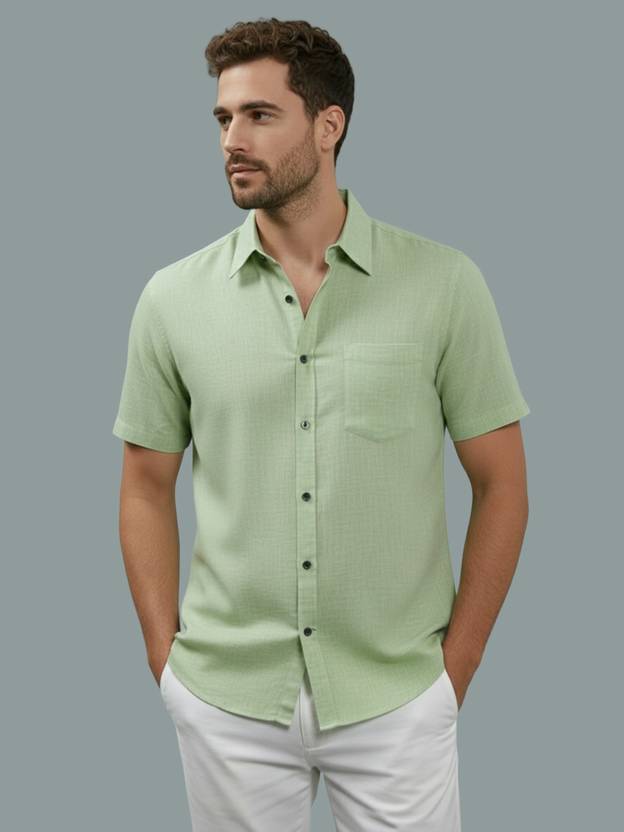 Men Slim Fit Solid Spread Collar Casual Shirt