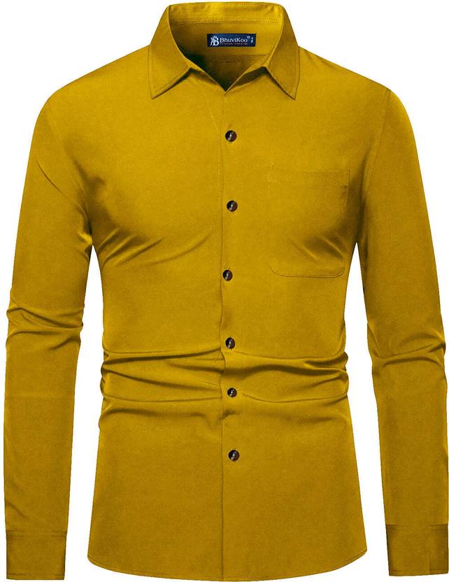 BHUVIKOO Men Solid Casual Yellow Shirt