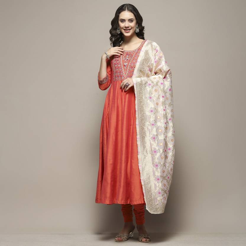 BIBA Women's Orange Polyester Blend Anarkali Suit Set