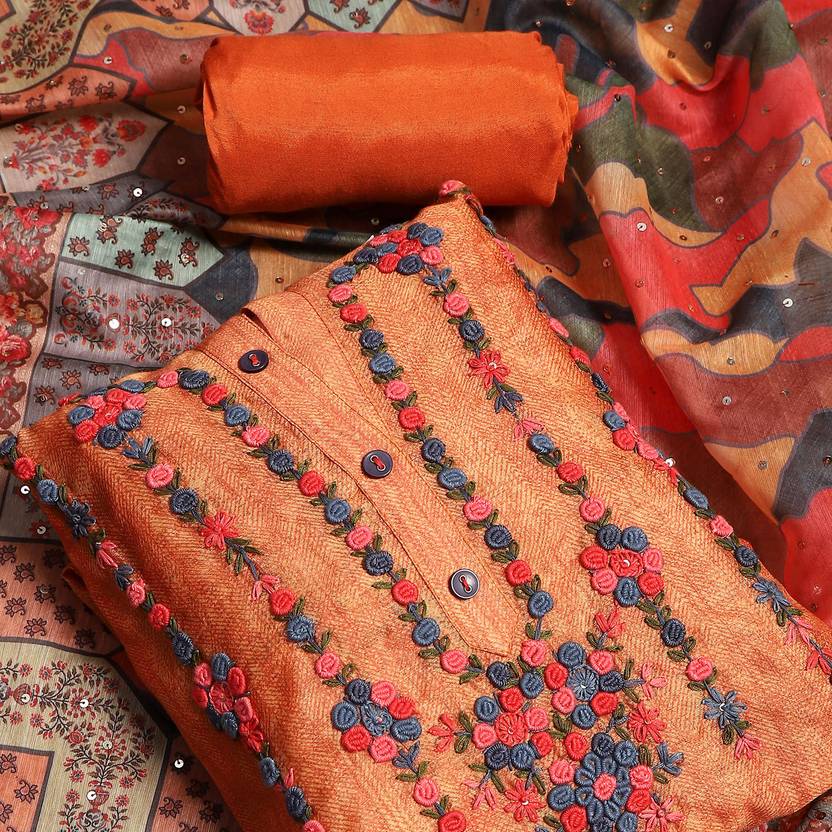Unstitched Chanderi Suit Fabric Embroidered