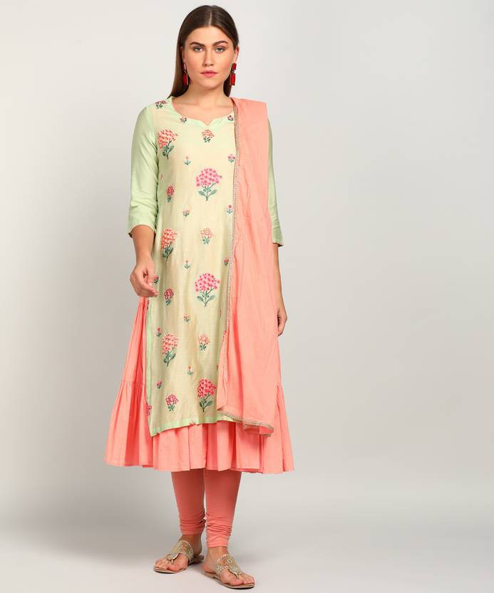 BIBA Embroidered Kurta, Legging & Dupatta Set