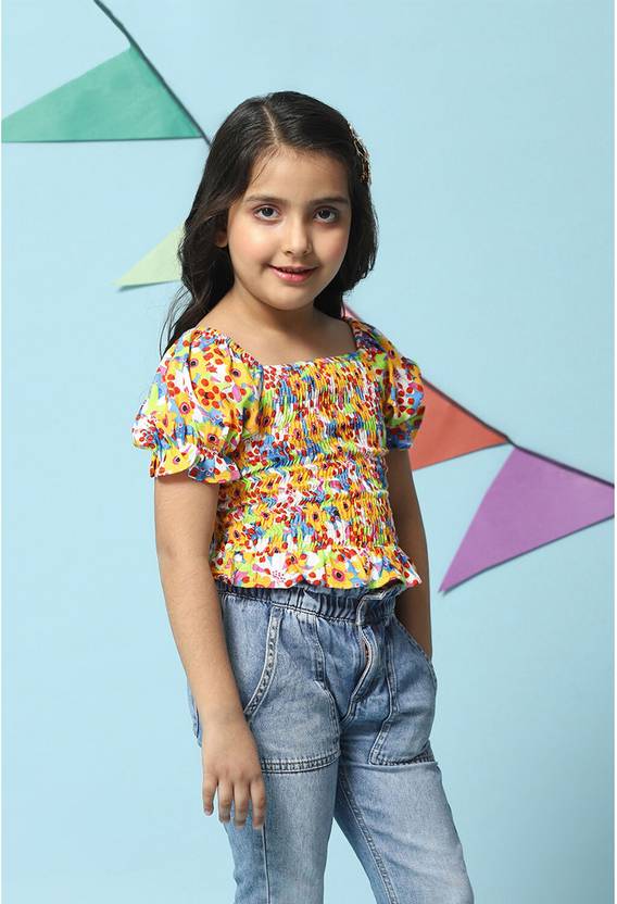 BIBA Girls Casual Rayon Top (Yellow, Pack of 1)